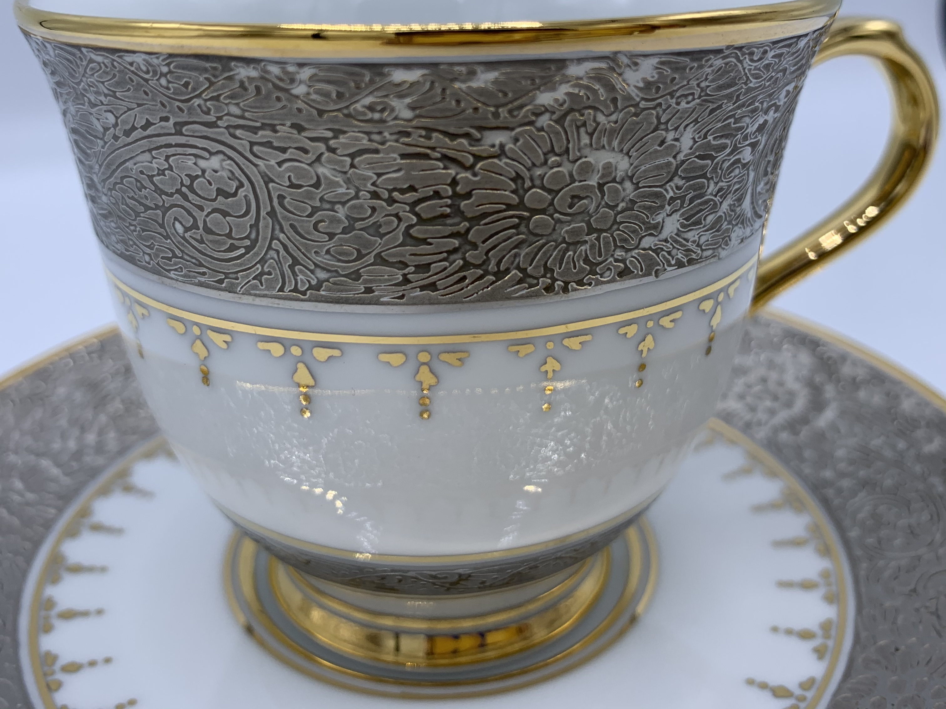 ถ้วยกาแฟเบญจรงค์ ลายจักรี เขียนลาย ลงสีต่างๆด้วยมือ ตัวชิ้นงานใช้วัสดุคุณภาพสูง พร้อมกล่องผ้าไหมเหมาะสำหรับเป็น ของที่ระลึกมอบเป็นของขวัญชิ้นพิเศษให้กับคนสำคัญ