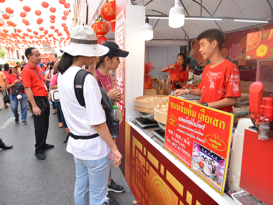 สำหรับการออกร้านจำหน่ายสินค้าในงานเทศกาลตรุษจีนครั้งนี้ เป็นการผสานความร่วมมือระหว่าง บริษัท ประชารัฐรักสามัคคีวิสาหกิจเพื่อสังคม (ประเทศไทย) จำกัด บริษัท ประชารัฐรักสามัคคีน่าน (วิสาหกิจเพื่อสังคม) จำกัด และ บริษัท ประชารัฐรักสามัคคีภูเก็ต (วิสาหกิจเพื่อสังคม) จำกัด โดยนำชุมชนจากจังหวัดภูเก็ตร่วมจำหน่ายเมนูจากยานัด (สับปะรดภูเก็ต) ส้มสีทองอินทรีย์ จังหวัดน่าน นอกจากนี้ยังมีหมูกระดาษป้าน้อย ชุมชนวัดประยุรวงศาวาสวราวิหาร ขนมกุฎีจีน จากร้านขนมฝรั่งกุฎีจีน และขนมจีบต้มเฮียเสก ชุมชนวัดกัลยาณ์ โดยสามารถสร้างรายได้ให้กับชุมชน จำนวน 104,960 บาท