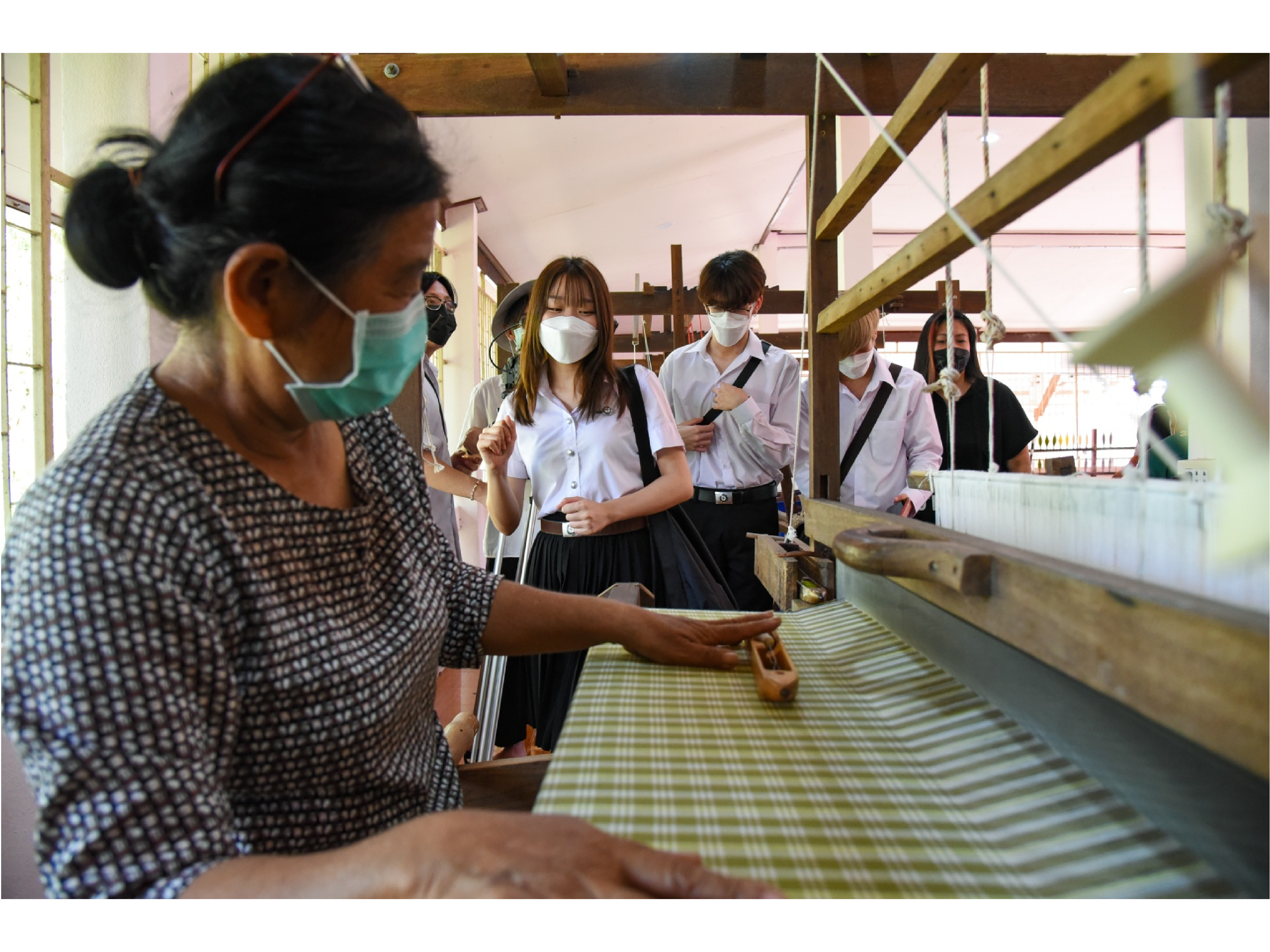 โครงการผ้าขาวม้าท้องถิ่นหัตถศิลป์ไทย โดย บริษัท ประชารัฐรักสามัคคี วิสาหกิจเพื่อสังคม (ประเทศไทย) จำกัด ร่วมกับโครงการ eisa (Education Institute Support Activity) โดย บริษัท ไทยเบฟเวอเรจ จำกัด (มหาชน) นำนักศึกษาจากคณะศิลปกรรมศาสตร์ คณะบริหารธุรกิจเพื่อสังคม และวิทยาลัยนวัตกรรมสื่อสาร มหาวิทยาลัยศรีนคริทรวิโรฒ ขับเคลื่อนกิจกรรม “Creative Young Designers” ลงพื้นที่วิสาหกิจชุมชนกลุ่มทอผ้าบ้านหนองเครือบุญ จังหวัดพระนครศรีอยุธยา เพื่อศึกษาผลิตภัณฑ์ผ้าขาวม้าทอมือของกลุ่ม ทั้งการใช้เส้นใย เทคนิคการทอ และการแปรรูป โดยยังได้ลงพื้นที่หมู่บ้านญี่ปุ่น เพื่อศึกษาประวัติความเป็นมา และนำมาเชื่อมโยงประกอบกับการออกแบบผลิตภัณฑ์ผ้าขาวม้าที่ทันสมัยเข้าถึงกลุ่มวัยรุ่นมากขึ้น อาทิ ชุดเสื้อผ้า กระเป๋า หมวก ยางรัดผม ฯลฯ รวมทั้งมีการพัฒนาด้านการตลาด ในรูปแบบการจัด Virtual Live Event ผ่านทางเพจ PakaomaThailand ซึ่งนักศึกษาวิทยาลัยนวัตกรรมสื่อสาร ที่ร่วมลงพื้นที่ในครั้งนี้ได้นำข้อมูลการตลาดเชิงลึกของกลุ่มมาจัดทำเป็นสื่อประชาสัมพันธ์ เพื่อสร้างการรับรู้ให้ผ้าขาวม้าบ้านหนองเครือบุญเป็นที่รู้จักในวงกว้างมากยิ่งขึ้น