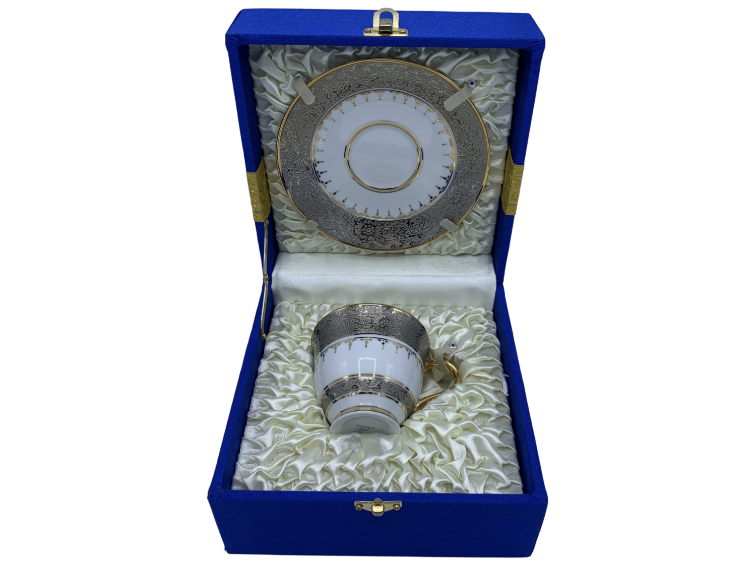 ถ้วยกาแฟเบญจรงค์ ลายจักรี เขียนลาย ลงสีต่างๆด้วยมือ ตัวชิ้นงานใช้วัสดุคุณภาพสูง พร้อมกล่องผ้าไหมเหมาะสำหรับเป็น ของที่ระลึกมอบเป็นของขวัญชิ้นพิเศษให้กับคนสำคัญ